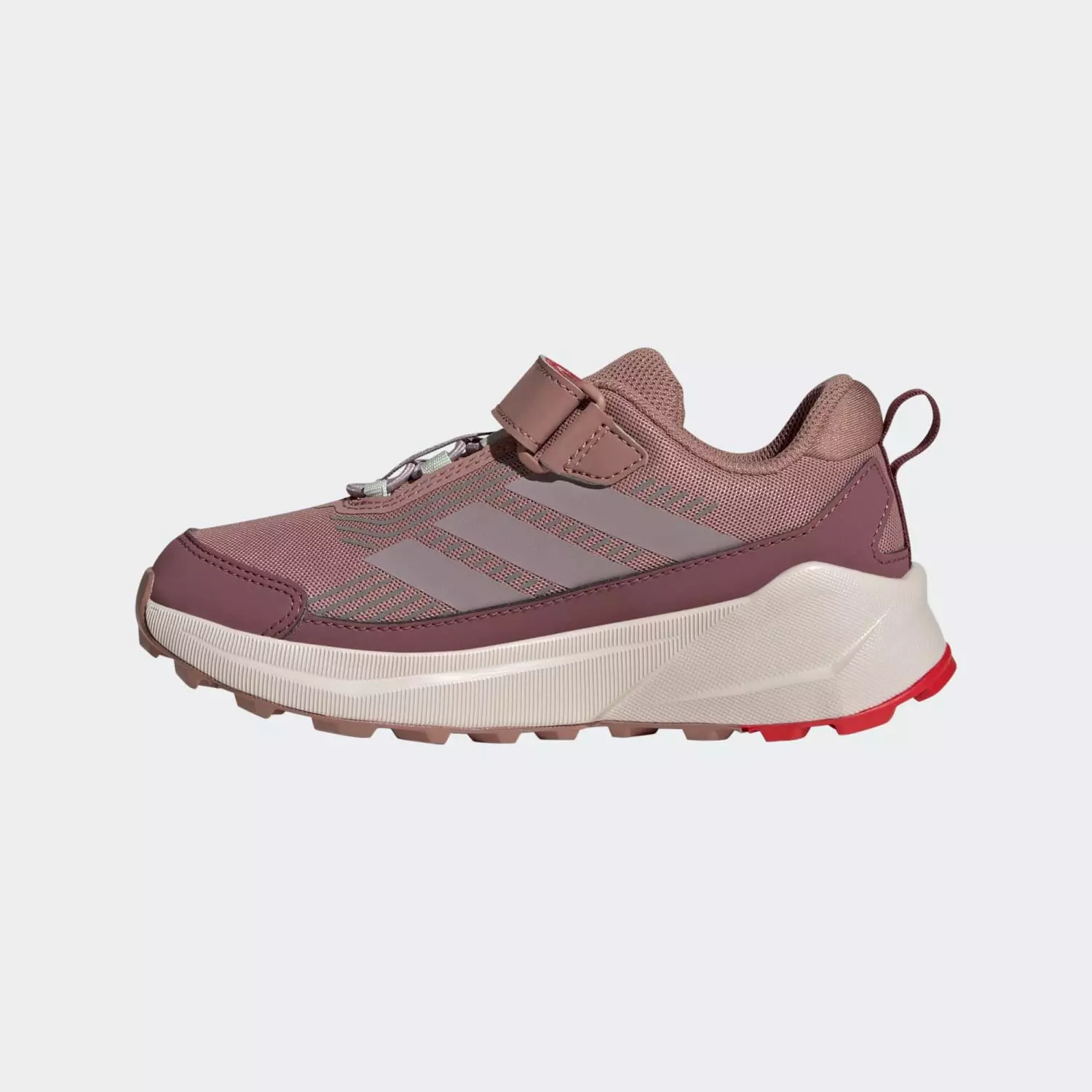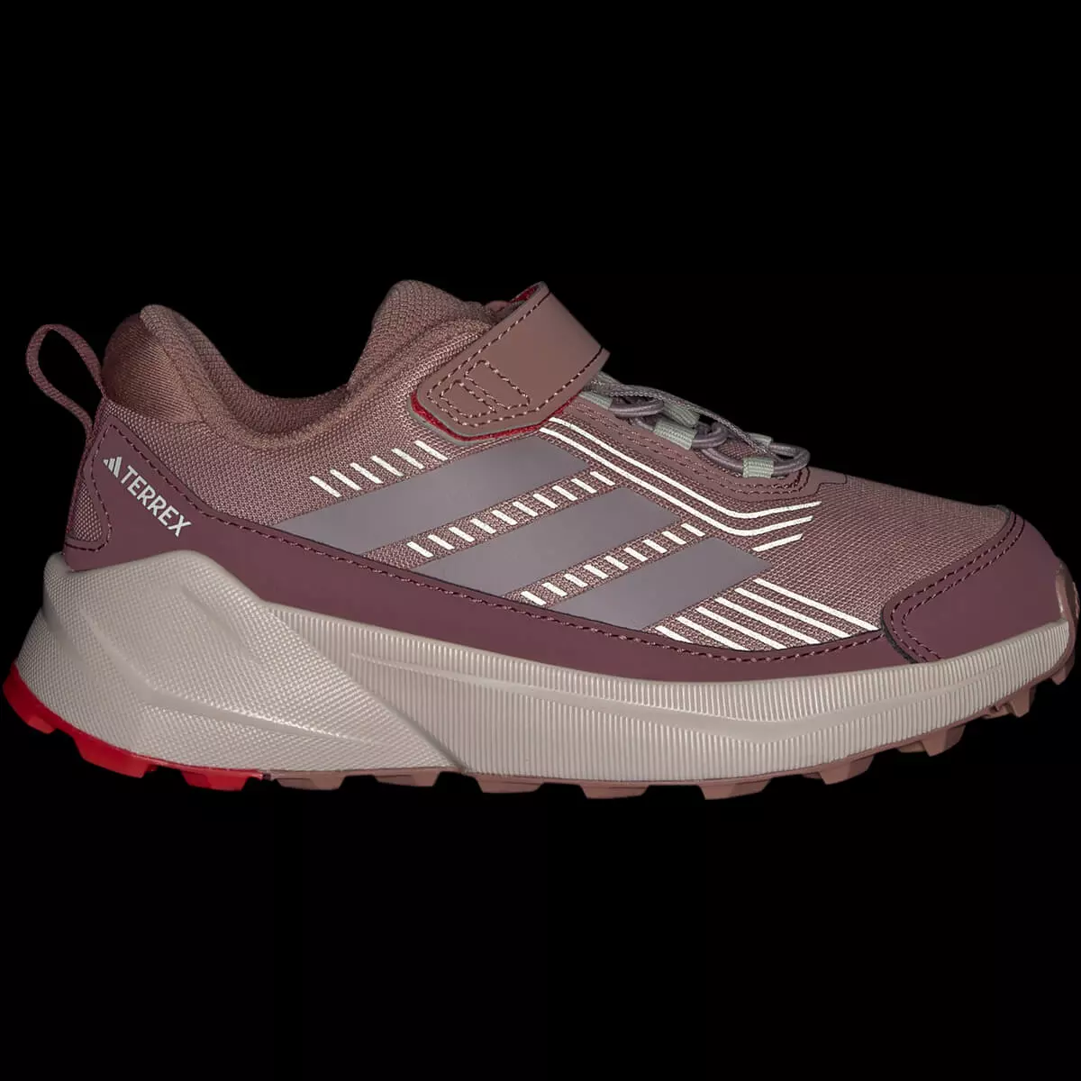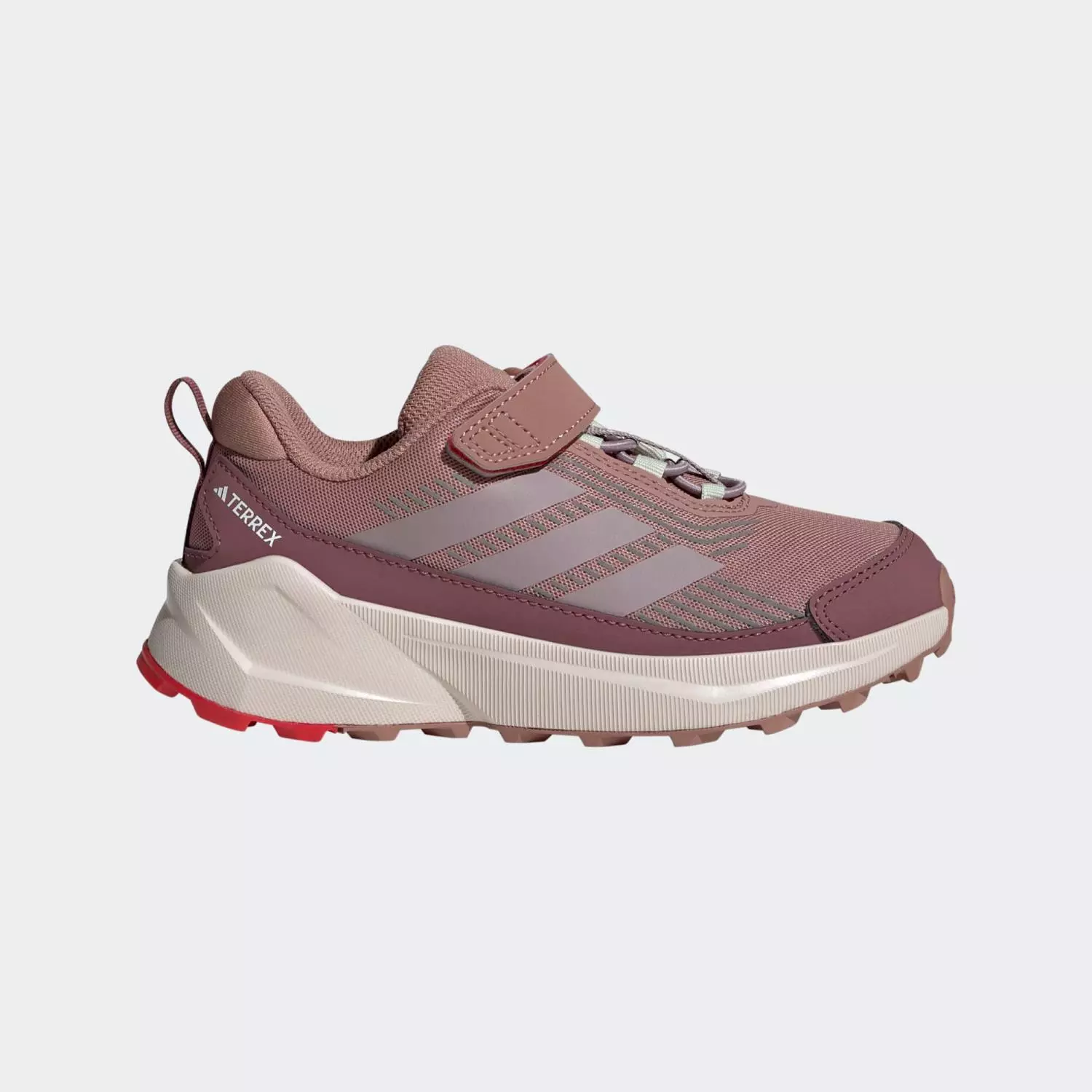 Adidas Terrex Trailmaker 2 velcro tursko til barn er et par flotte tursko som kan brukes både på tur og til hverdagsbruk. Det verste vannet holdes unna føttene, mens den grove gummiyttersålen sikrer et godt grep mot underlaget når den lille eventyreren bærer disse adidas barne turskoene.
