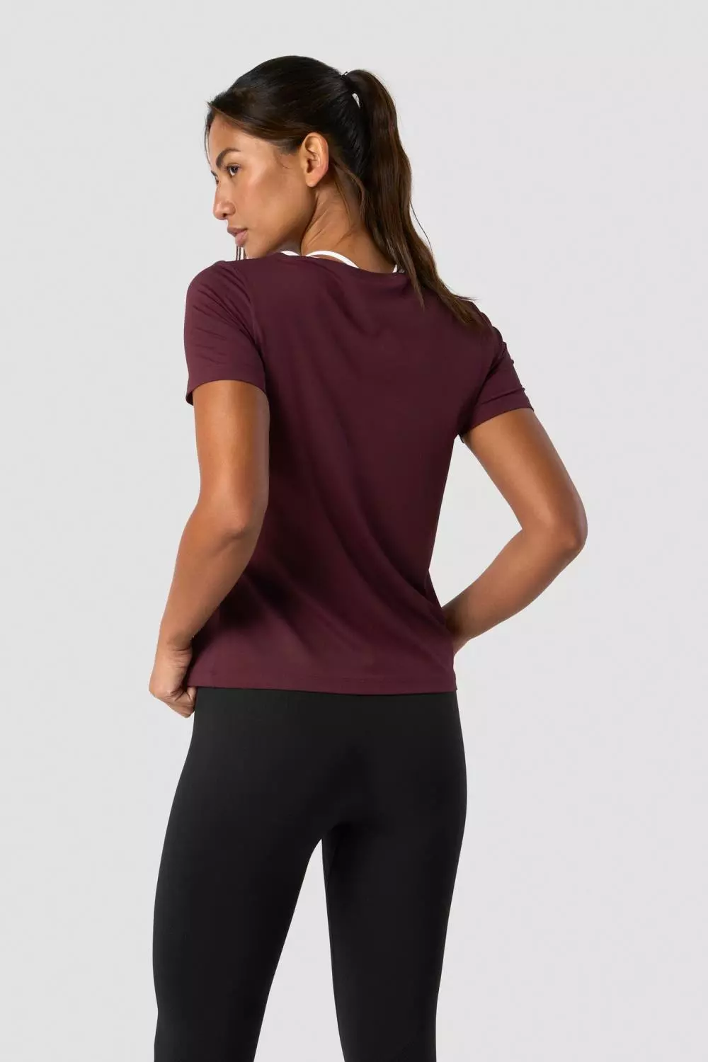Trenings-T-skjorte i elastisk materiale. Denne allsidige t-skjorten gir deg mulighet til å yte ditt beste, uansett treningsøkt. Materialet er lett og elastisk og holder deg tørr under hele økten. ICIW-logo foran. Normal passform. Full lengde. 88% nylon, 12% elastan